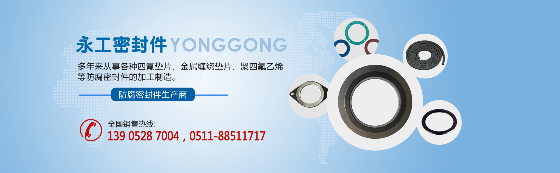 江蘇省揚中市永工密封件有限公司,位于美麗富饒的長江三角洲中,氣候宜人,交通方便,是一家專業生產四氟墊片、金屬纏繞墊片聚四氟乙烯等防腐密封件的企業。